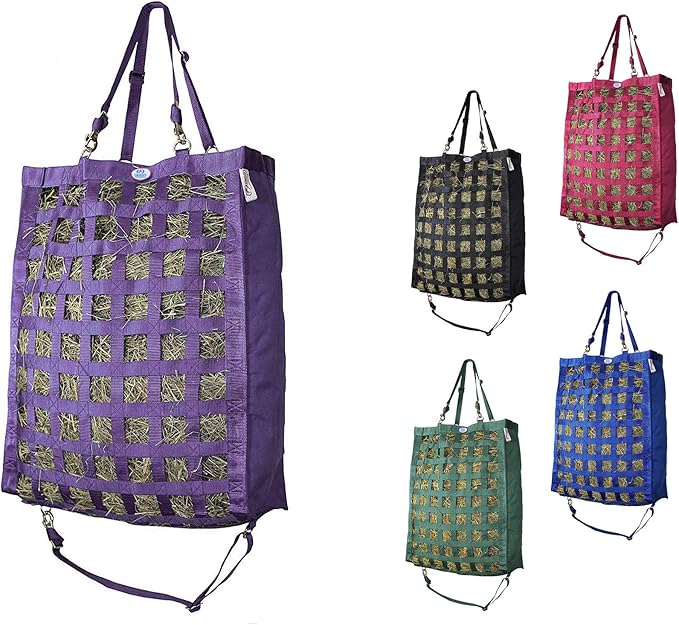 - DURABLE CONSTRUCTION - This heavy-duty reinforced nylon hay bag features replaceable hanging straps and snaps, allowing for easy replacement of worn parts and extending the bag's lifespan.