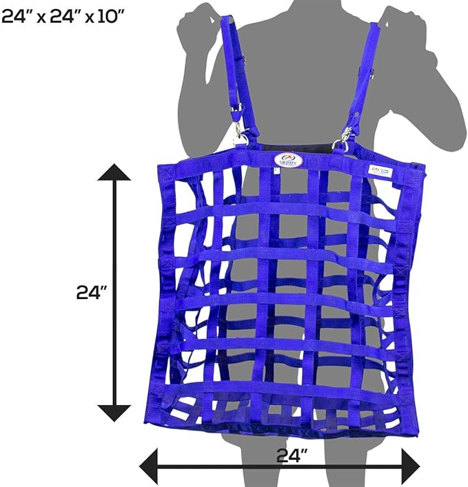 - HOLDS 2-3 FLAKES OF HAY - this 24x10x24" hay bag with 3.5x3” rectangular openings holds approx. 2-3 flakes of Timothy, Orchard, Alfalfa, or any other type of hay. Our hay bags were designed to minimize frustration and can be stuffed in seconds.