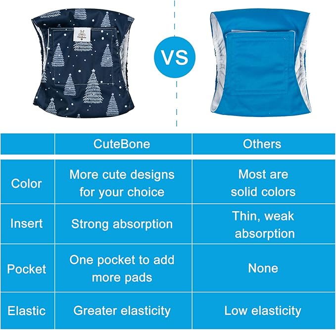 - CuteBone male dog diapers are designed with comfort and durability in mind, they’re perfect for untrained puppies and dog’s incontinent. These soft doggie diapers help your pet keep clean and dry between walks.