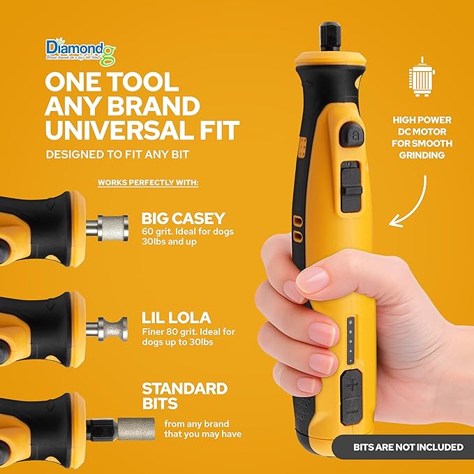 - Universal Fit with 5 Adjustable Speeds – designed to fit any brand of attachment, our electric dog nail trimmer gives you full control with speed settings to tackle any nail thickness. Powered by high-torque DC motor for smooth, effortless grinding.