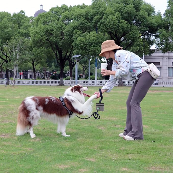 - MAGNETIC CLOSURE: The dog treat bags is designed with magnetic closure, you can reach in and take out the dog treat with one hand, no need to close it manually, it will automatically close tightly and the dog treats will not fall out. Equipped with a metal hook can be hung on the waist of the trousers, or on the dog leash, don't worry about falling off, very convenient.