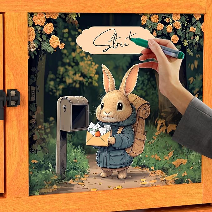 - Durable & Weatherproof: The outdoor wooden rabbit house is made of a sturdy pine wood frame, which is very durable, has no odor, and has a green oil felt on top to keep out the wind and rain.A warm home for your pet friend