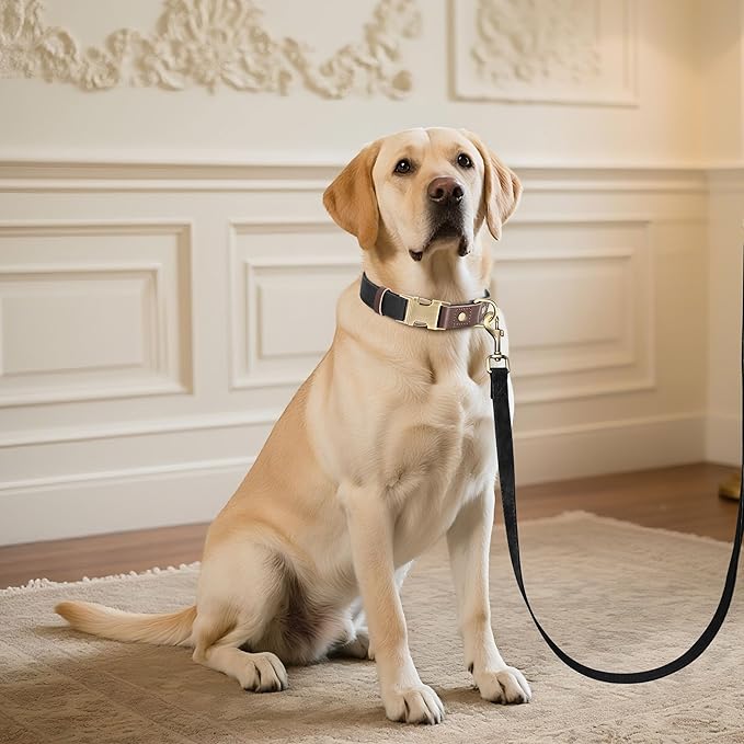 Didog Soft PU Leather Dog Collar for Large Dogs,Classic Adjustable Dog Collars with Quick Release Metal Buckle,Easy Clean and Comfortable with Nylon Lining,Black,L Neck 15-23"