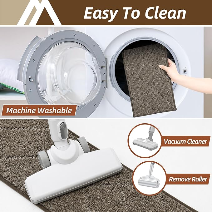 - Washable and Easy Removal:If you need to reposition or remove stair runners,it will not leave any residue, protecting your staircase from damage.When stair rugs get dirty, simply vacuum to clean up dust, scraps and pet hair.Or throw stair treads in the washing machine. After washing them in water, it is recommended to dry them in the shade, not in the dryer or in the sun