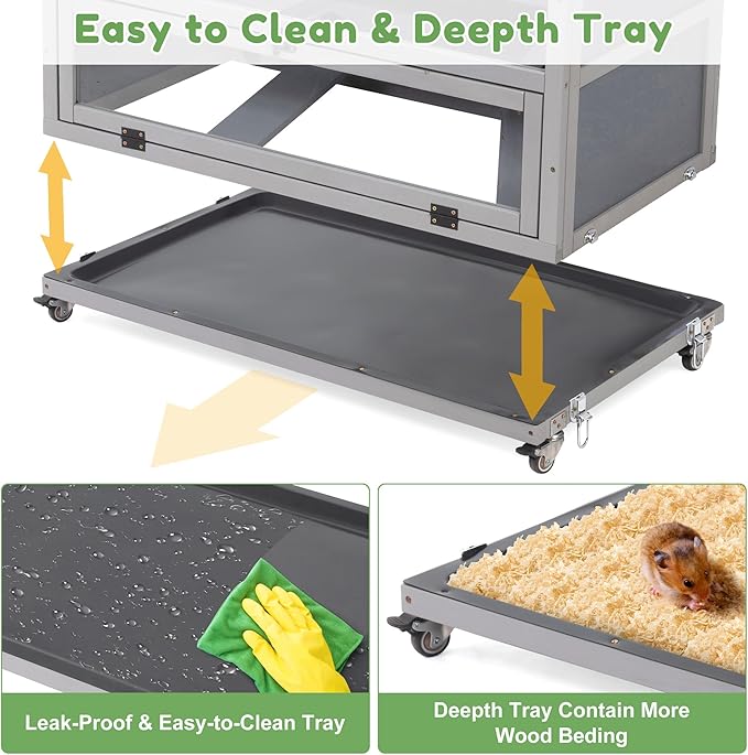 - Effortless Cleaning in Minutes: The removable leak-proof tray and openable acrylic window make cleanup a breeze. Simply wipe away messes in seconds – no disassembly needed! A clean cage means a happier, healthier pet.